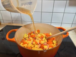 • Anschließend mit Fleischbrühe ablöschen.