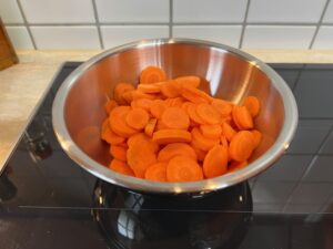 • Karotten schälen und in Scheiben schneiden
