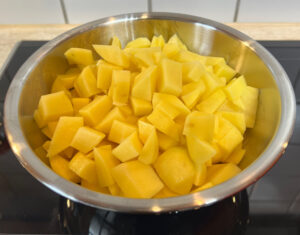 • Kartoffeln schälen und würfeln