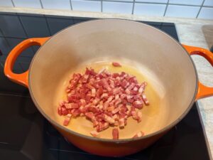 • Speck im Topf heiß anbraten.